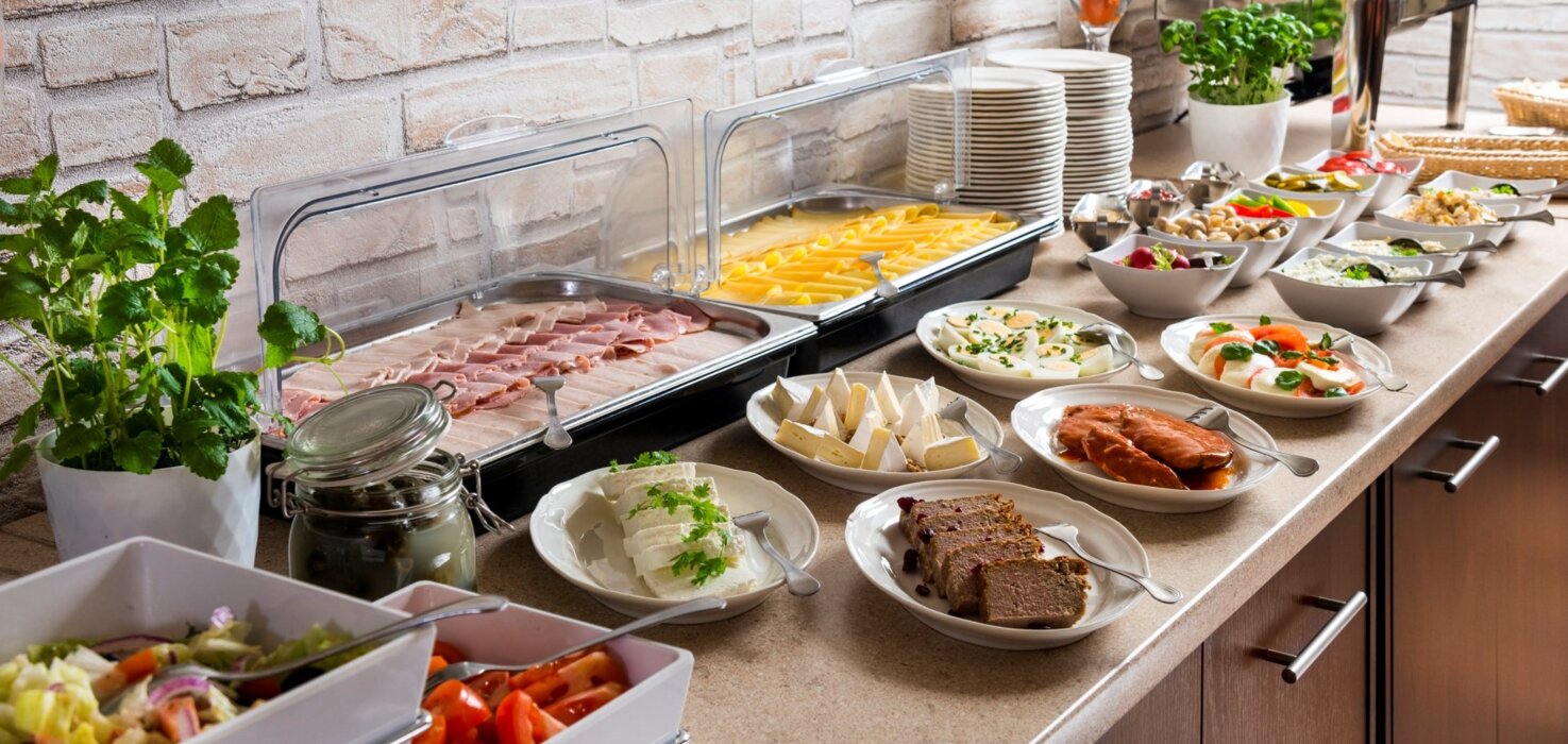 We serve a delicious and varied breakfast buffet every day from 7:00 to 10:00 am. We will prepare hot and cold dishes such as pancakes with sauces, scrambled eggs, or sausages. We always serve fresh cold meats, salads, and vegetables to go with the bread, and complement it with fruit.